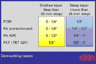 為確保帶的制品容易頂出,必須設(shè)計一個適當?shù)拿撃eF度(見圖2)。