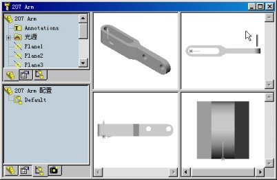 2.窗口的分割:雙擊或拖動窗口分欄線,可以將同一窗口進行分割,以便于在不同的窗口中觀看模型的不同視圖。對左側(cè)窗口進行分割可以同時顯示不同的內(nèi)容,如FeatureManager設(shè)計樹、PropertyManager屬性管理器或ConfigurationManager配置管理器,如圖1所示;
