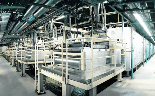 山特維克提供的薄膜流延設(shè)備都是基于優(yōu)質(zhì)的鏡面拋光鋼帶,因?yàn)橹挥懈哔|(zhì)量的鋼帶表面才能制造出高性能的薄膜。我們的拋光鋼帶都產(chǎn)自瑞典,擁有上百年的技術(shù)和經(jīng)驗(yàn)。在拋光鋼帶的生產(chǎn)過(guò)程中采用電渣重熔法(Electro-Slag-Remelting) 嚴(yán)格控制雜質(zhì)含量來(lái)滿足極高品質(zhì)的要求。冷軋鋼帶經(jīng)整平和裁邊后可達(dá)到最高的平整度和直線度要求。全面的橫向連續(xù)拋光使產(chǎn)品達(dá)到最終的超鏡面拋光質(zhì)量。